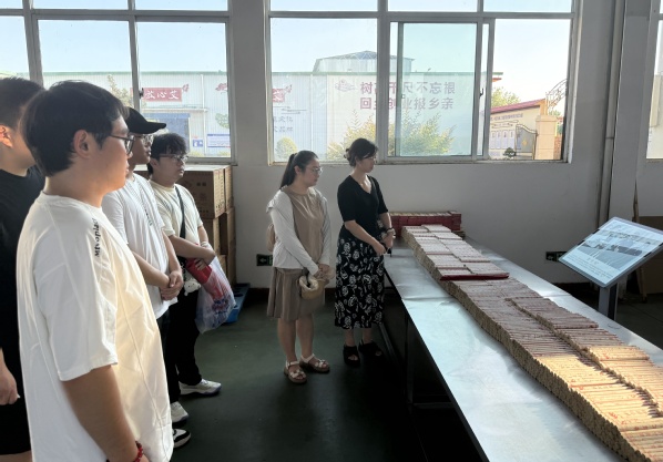 8月4日,实践团队到南阳药益宝艾草制品有限公司实地观摩艾绒提取、艾条卷制等智能化生产线,并参观了有200余种艾制品的展示中心,同学们直观理解传统中医药与现代工业技术的结合路径,为创新创业提供鲜活案例。